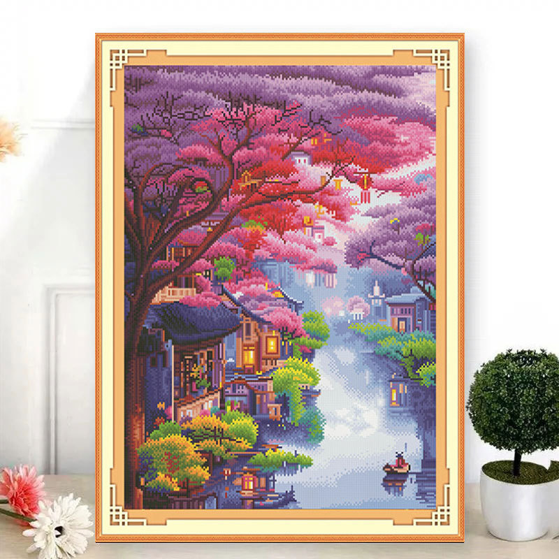 代理十字刺繍2025新型江南水郷客間寝室レストランは簡単に刺繍された小幅な風景図である