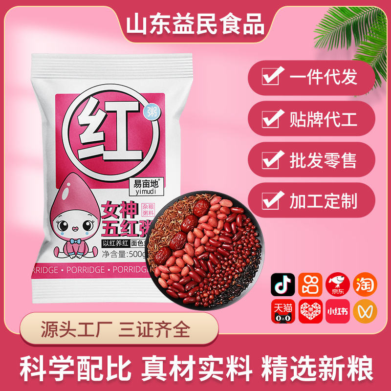 五赤粥、小豆、赤米、落花生、ナツメヤシ、クコ、八宝粥、原料、栄養価の高い朝食粥、ドロップシッピング卸売
