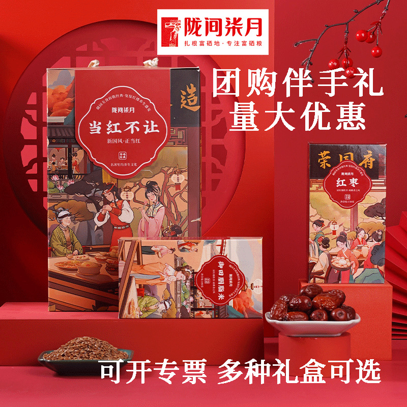 隴間月のメーカーは雑穀のギフトボックスを提供しています。