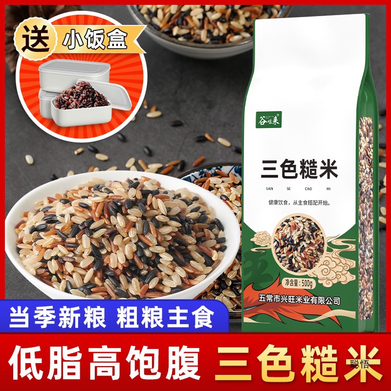 三色玄米 新2.5kg 低脂肪赤米 黒米 玄米 フィットネス 妊婦 穀物胚芽米 500g/袋