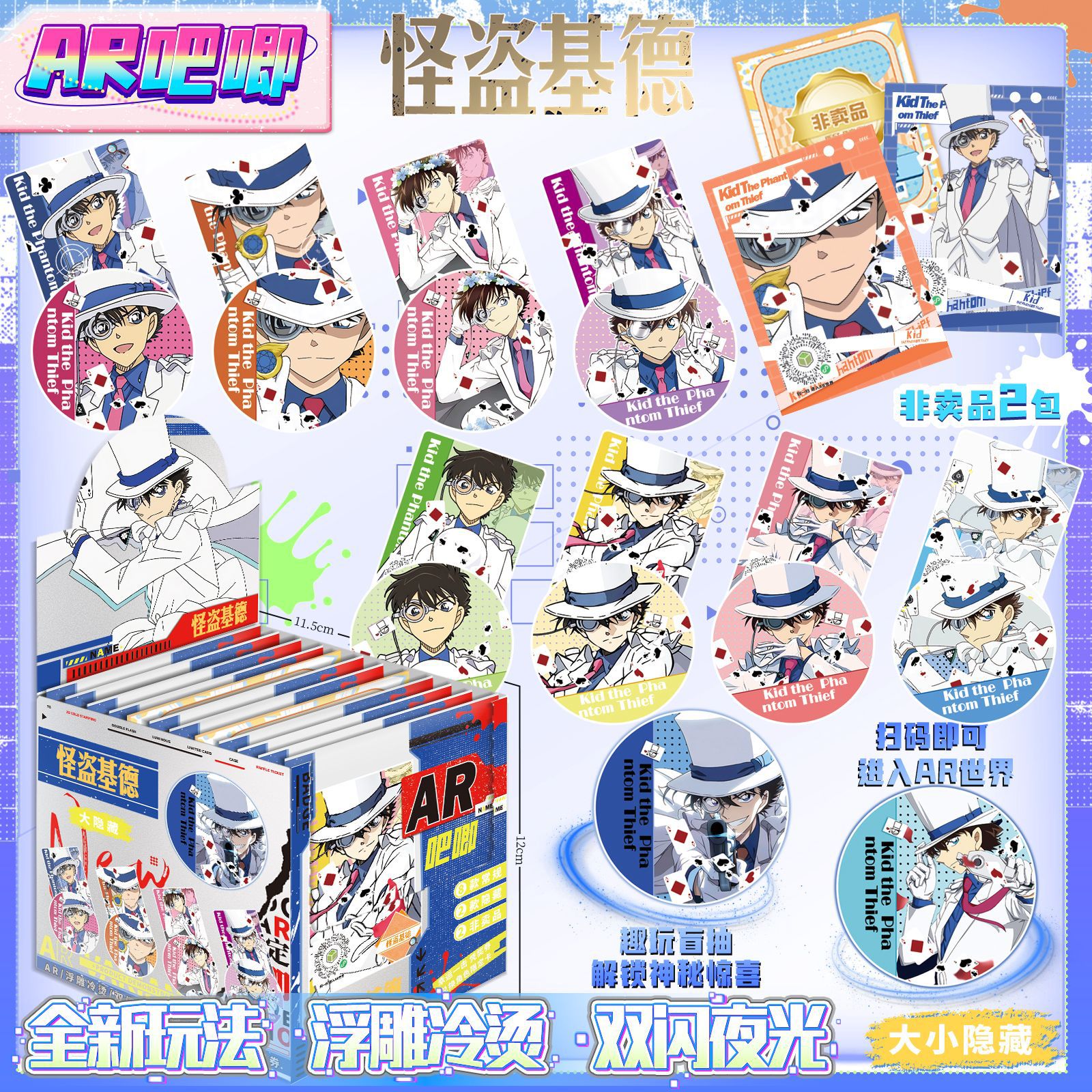 ARブラインドドローバー、カラフルなエンボスバッジ、バーカードセット、グジブラインドボックス、ブラックテクノロジーシーン特殊効果