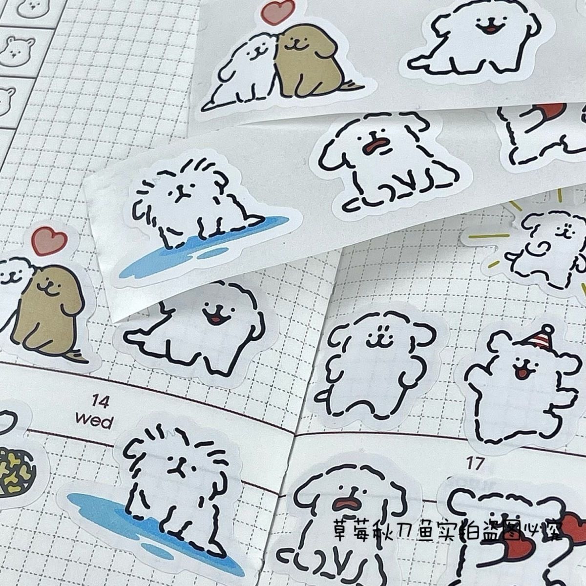 赤い本の同じタイプのかわいいラインの子犬のシールはテープの手帳のシールの巻きのシールの犬の巻きのシールを貼ります。