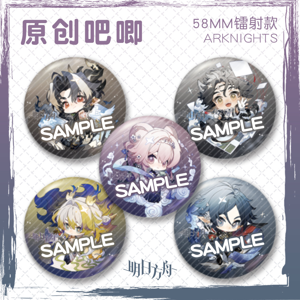 【ウォームニャン】同人明日方舟58mmレーザーバッジ林黍万頃重岳左楽ゲーム周辺
