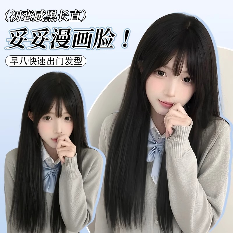 黒ロングストレートナチュラルCOSフルヘッドギア女性用エア前髪ふわふわナチュラルファッションデイリーフルヘアフルヘッドギア