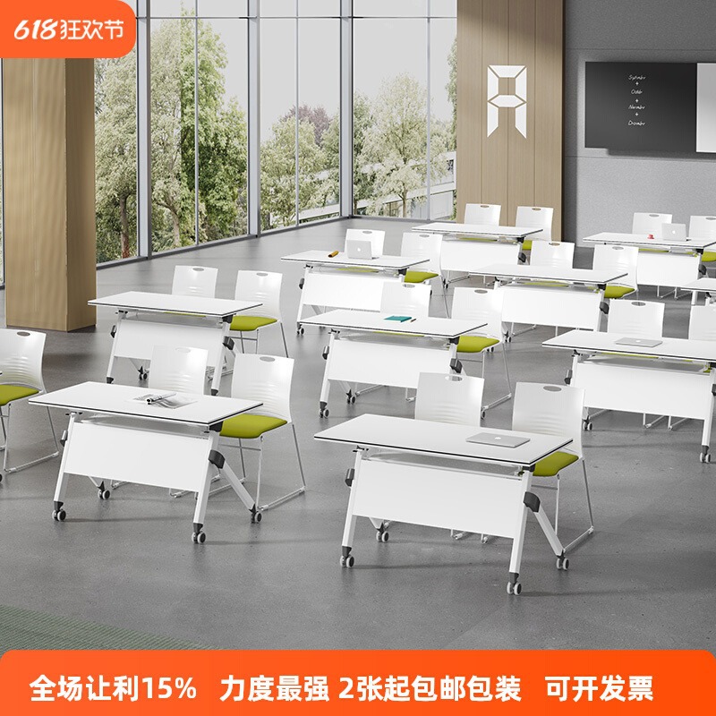 折りたたみトレーニングテーブルと椅子の組み合わせモバイルスタッフ会議テーブルダブルトレーニングテーブル教育機関スプライシングコンビネーションデスク