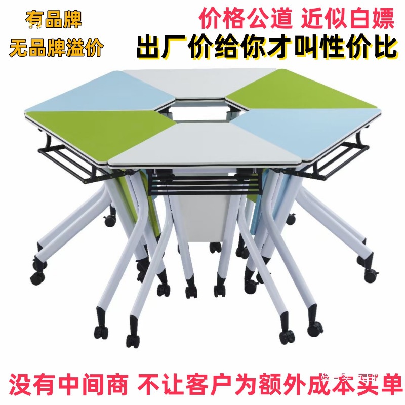 多機能折りたたみトレーニング会議テーブルロングテーブル機関学習テーブルモバイルデスクと椅子の組み合わせ六角形テーブル