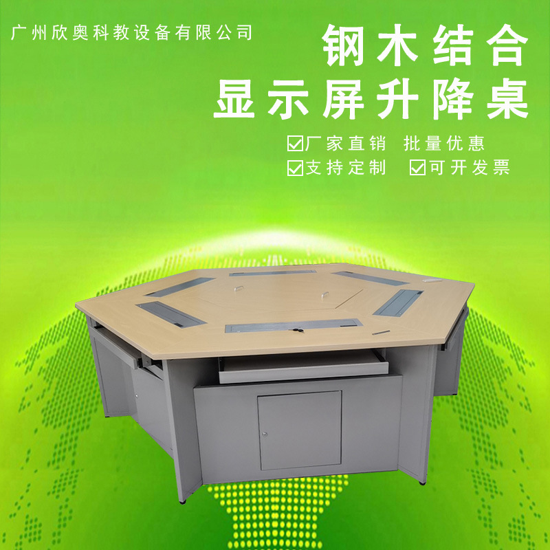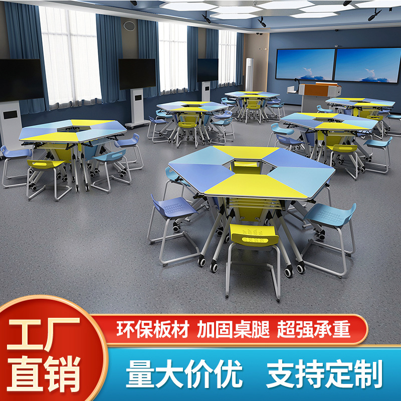 トレーニングテーブル エンタープライズトレーニングテーブルと椅子 トレーニングルーム 六角形液晶画面昇降トレーニングテーブル 会議室ディスカッションテーブル