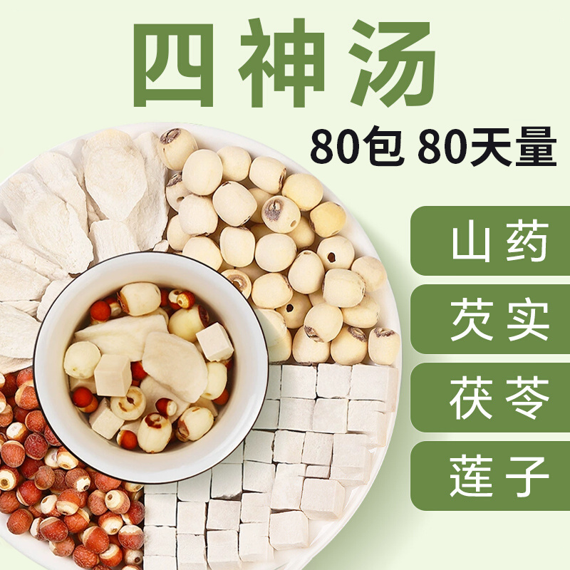 四神湯、山芋、蓮の実、ポリア、ココナッツ、大人と子供のための脾臓と胃の健康と湿気の除去、本物の湿気四物湯、湿気健康ティーバッグ