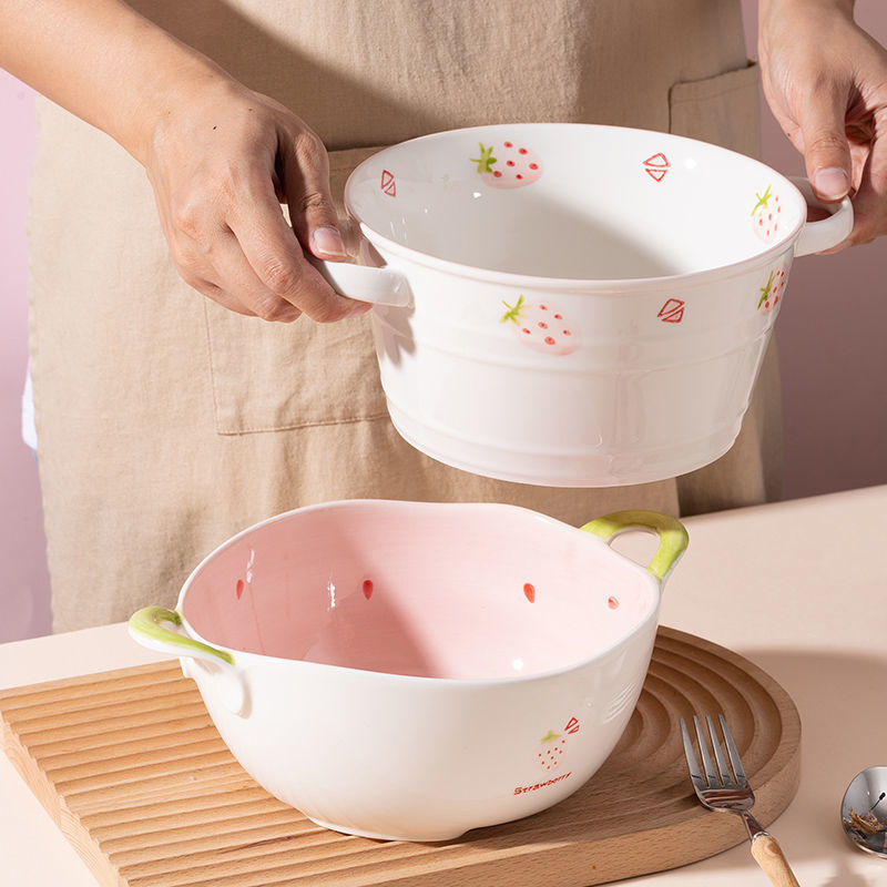 家庭用のかわいいイチゴの両耳の大きいスープの碗の日本式の食器の酸っぱい魚の水煮の魚のナットの粉の碗の大きいスープのたらいの恩順