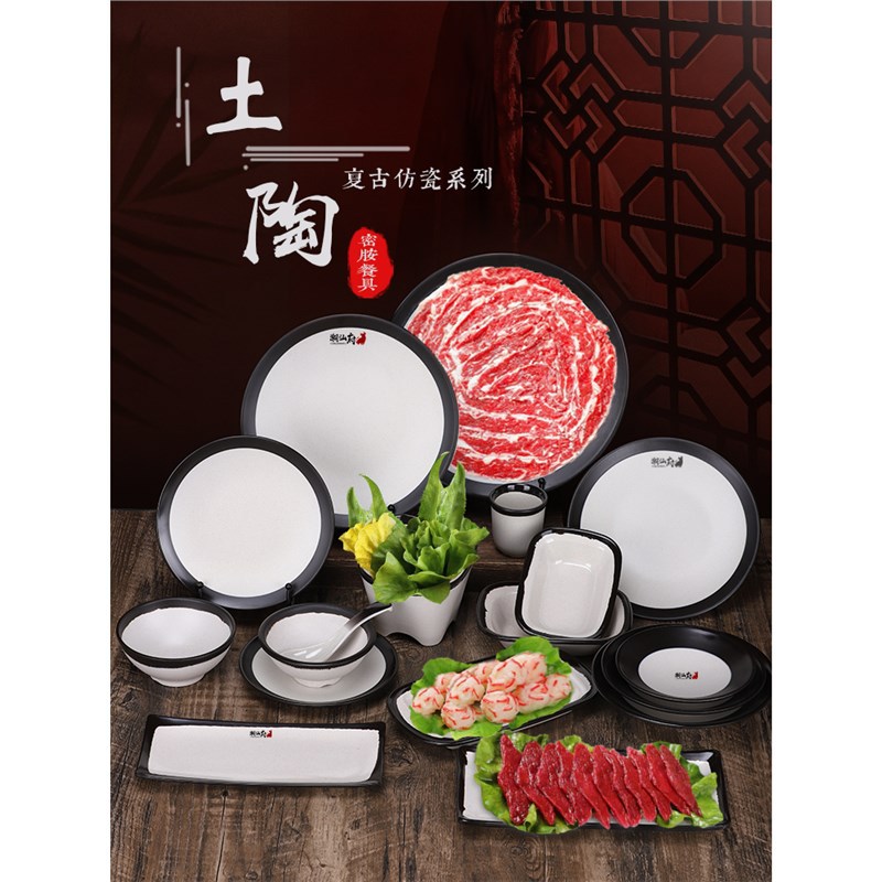 ネットの赤い重慶の古い鍋のおかずの皿の牛肉のしゃぶしゃぶの皿の食器のアイデアのメラミンの復古の土陶の碗は材料の碗をつけます。