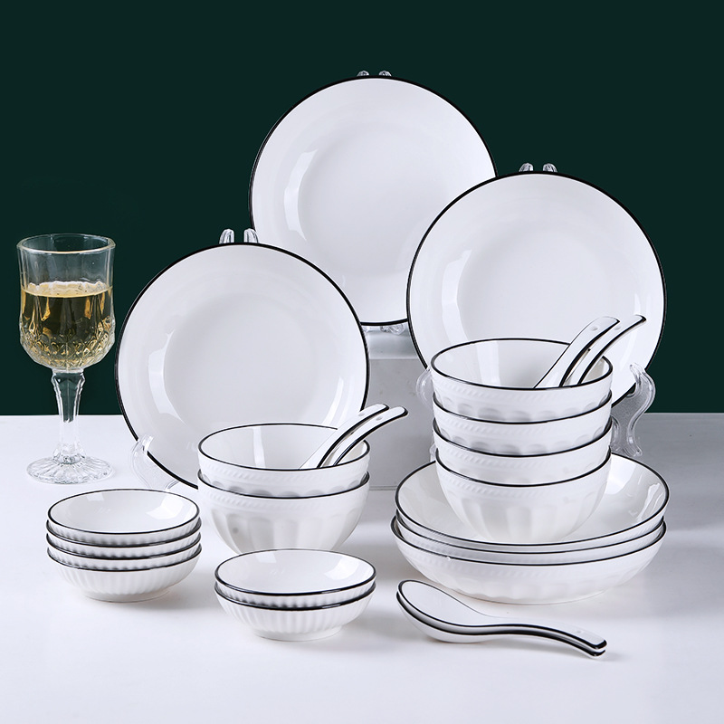 新しいロータス 4 皿 6 ボウル 10 ピース食器セットヨーロピアンスタイルの組み合わせ釉下色技術電子レンジ対応ライスボウル