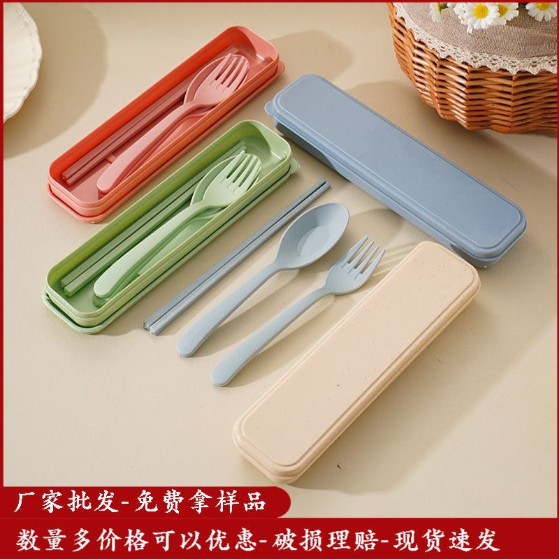 スプーン箸フォーク三点セット小麦わら携帯プラスチック食器学生旅行収納食器箱