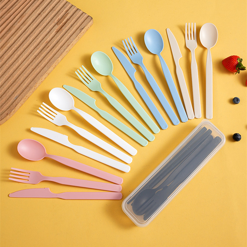 クロスボーダーPPカトラリー旅行ポータブルカトラリーセット厚手プラスチックナイフフォークスプーン箸ギフト可ロゴ4点セット