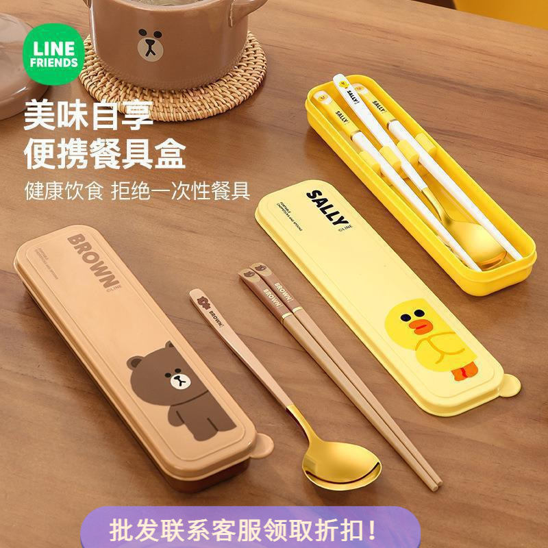 LINE FRIENDSステンレス箸家庭用スプーンセット学生外付け可携帯箸スプーン2点セット