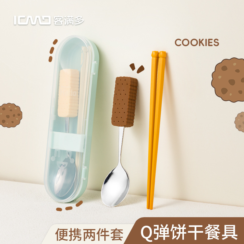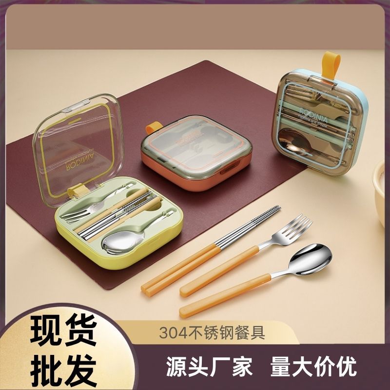 304ステンレス箸スプーンセットサラリーマン小学生子供クリップ携帯食器収納ケースカスタム
