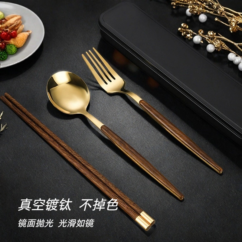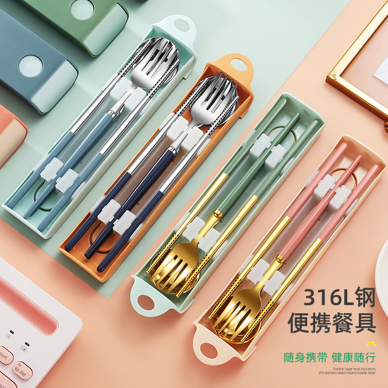 卸売り316ステンレスフォークスプーン箸食器3点セット簡単出勤学生携帯食器スプーン