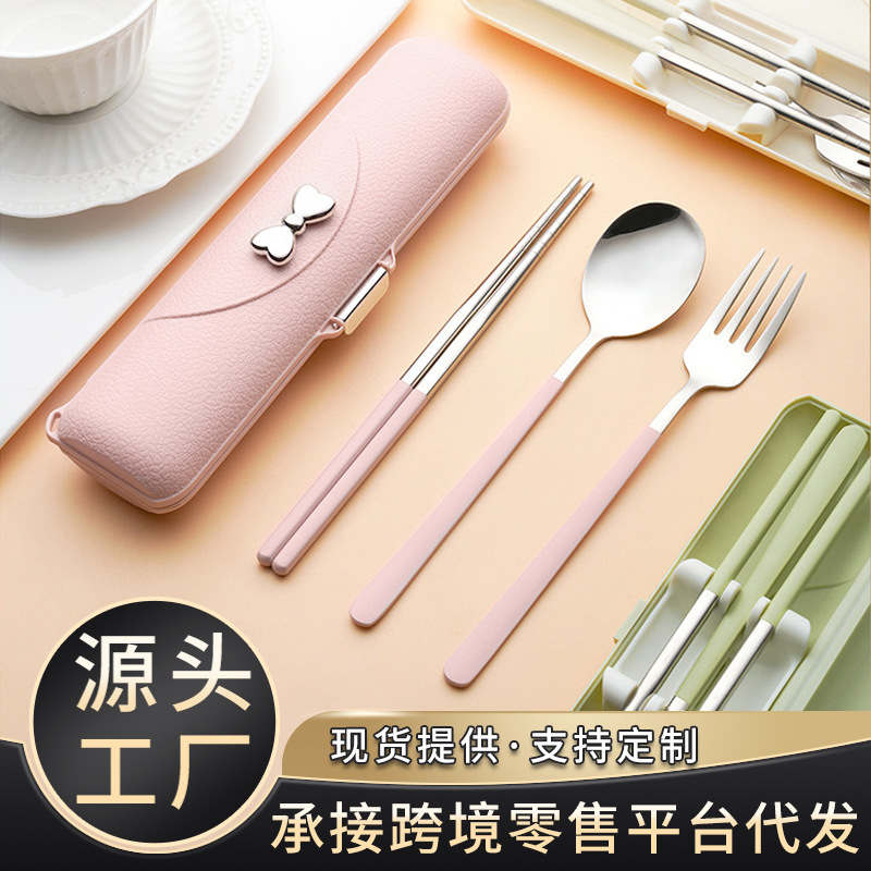 316食器セット304ステンレス携帯食器ケースセット卸売り箸フォークスプーン学生食器収納ケース
