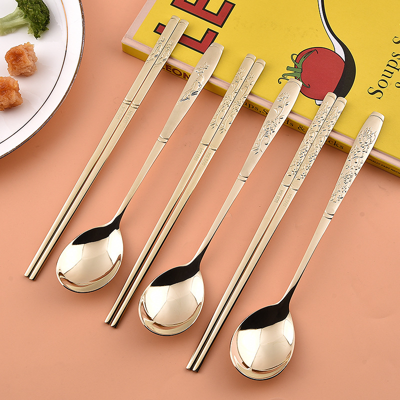 304ステンレス韓国式箸スプーン創意食器洋食スプーン成人箸レストランプリント箸家庭用