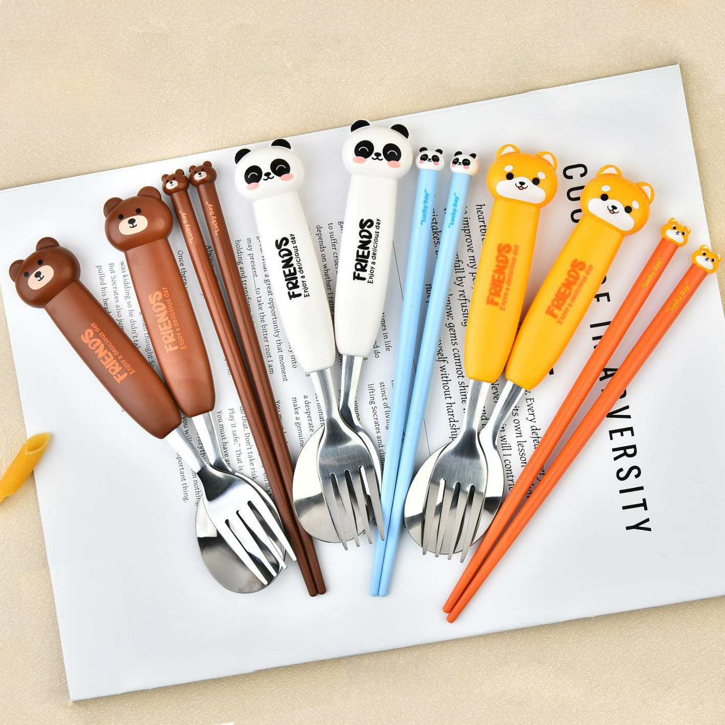 漫画熊学生フォークスプーン箸3点セット子供用品携帯食事食器セットデパートプレゼント