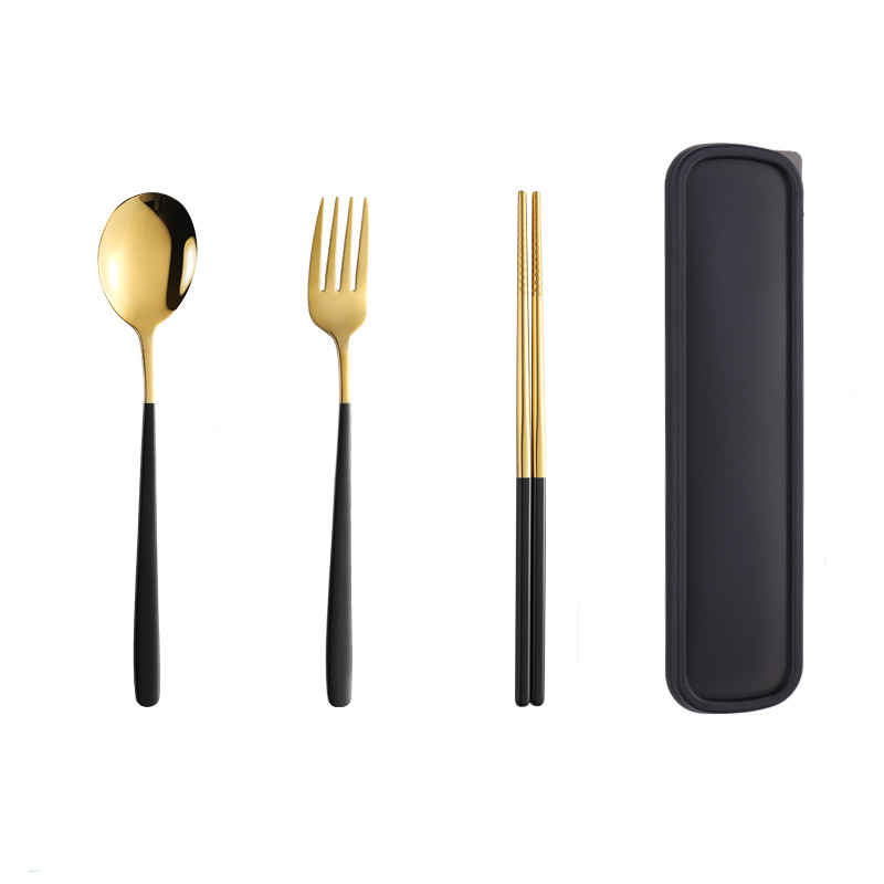 ネットレッド304ステンレス食器スプーン箸セットクリエイティブデザートスプーン携帯ケース食器