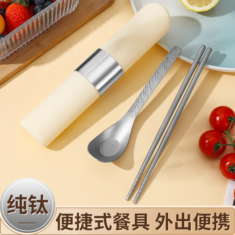 純チタンハンマースプーン携帯食器セット学生スプーン収納ケース出勤屋外スプーン箸セット三点セット