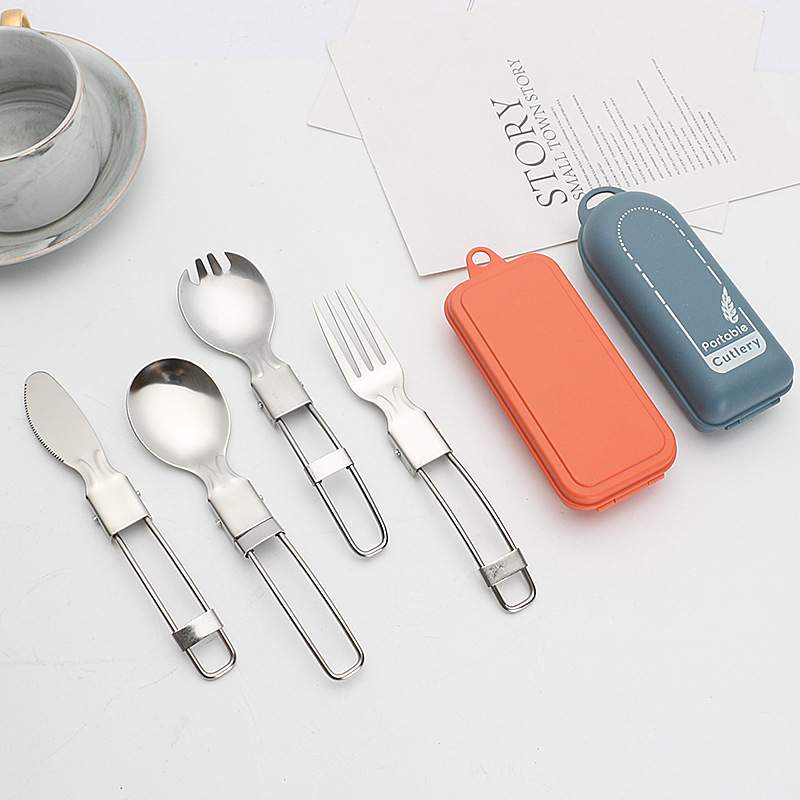アマゾンステンレス折り畳みナイフフォークスプーンセット学生屋外旅行携帯食器創意キャンプ食器