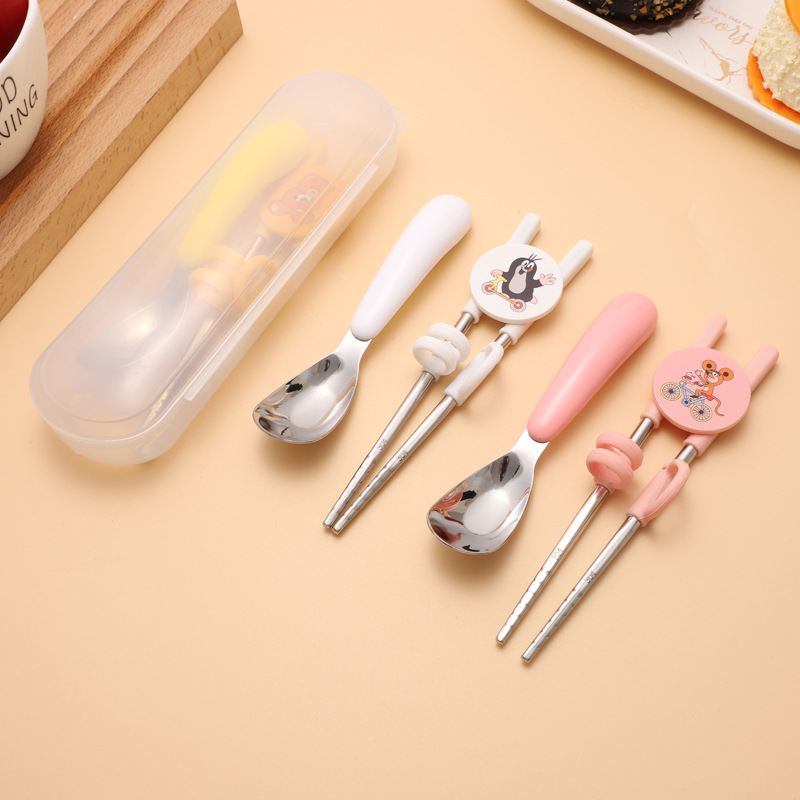 漫画子供食器スプーン箸収納ボックス304食品ステンレススプーン箸学生携帯食器セット