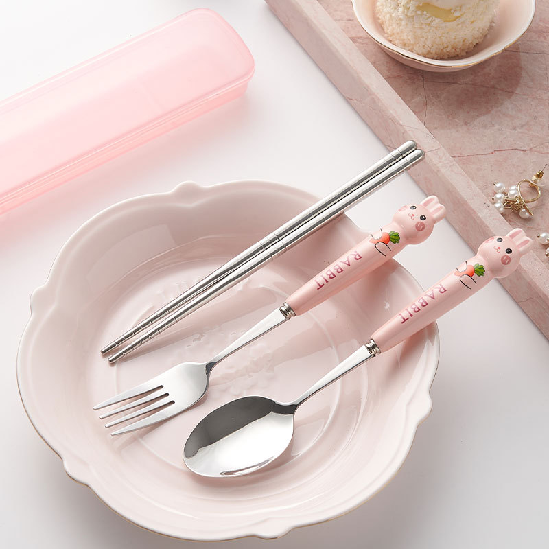 304ステンレスポータブル食器学生サラリーマン漫画かわいい箸スプーンフォーク食器セット