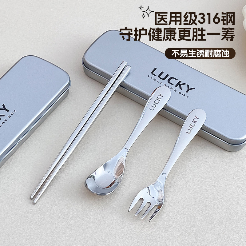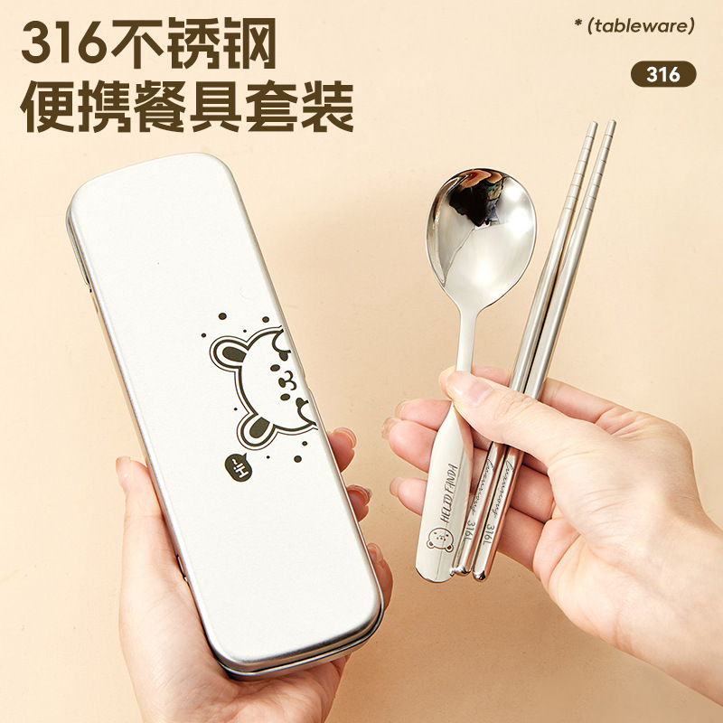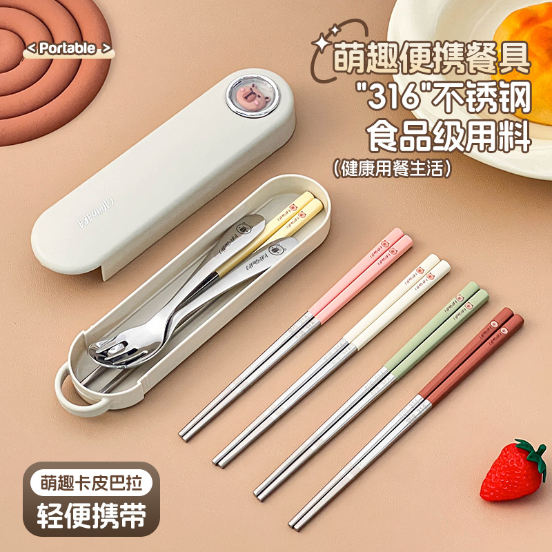 316 ステンレス鋼のポータブル食器、箸とスプーンの 3 点セット、見栄えの良い学生旅行フォーク、スプーンと箸セット、かわいい