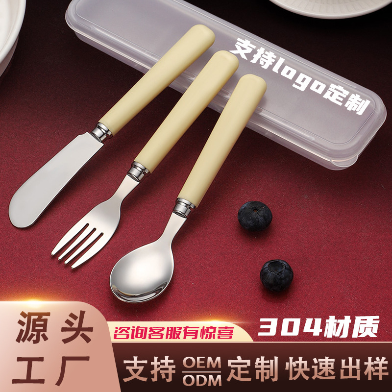 携帯食器ステンレス304セット食品級屋外家庭用学生クリームシリーズステンレススプーン