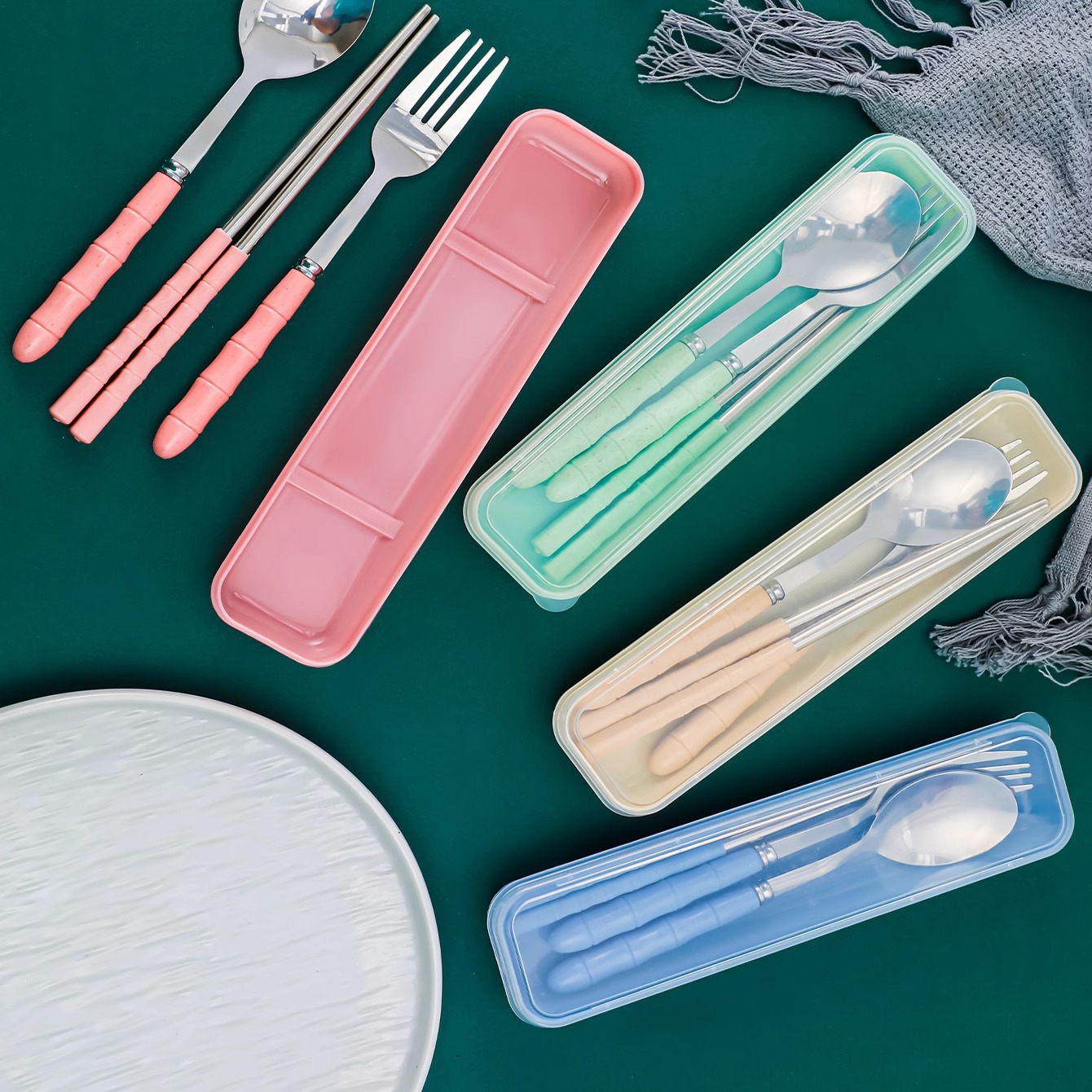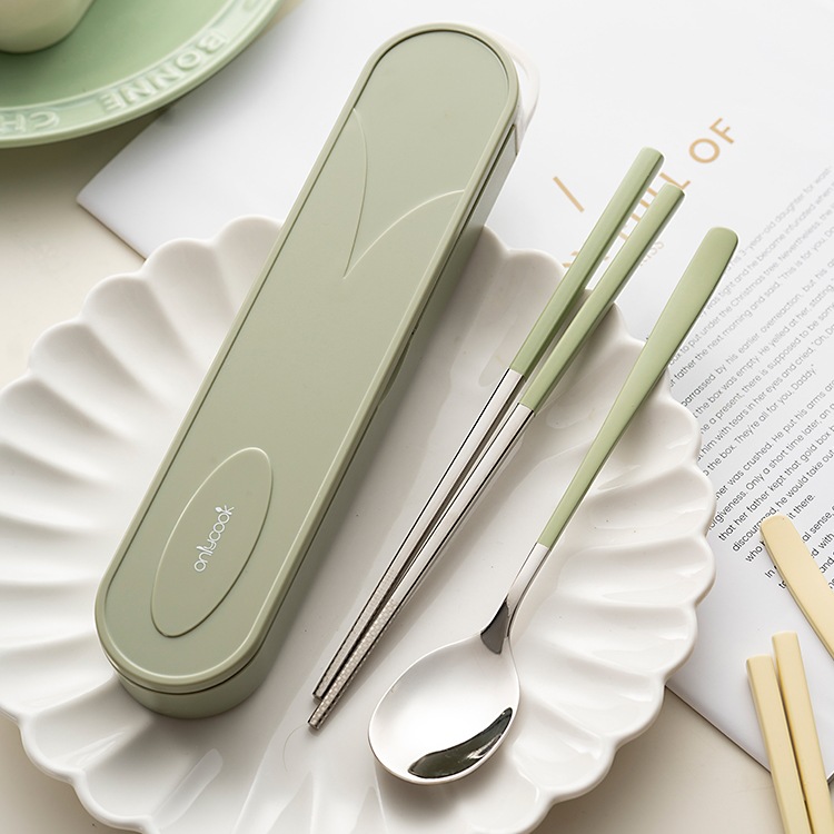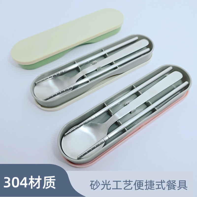 304 ステンレス鋼のポータブル食器セット学生箸収納ボックス旅行テイクアウト屋外フォークスプーン