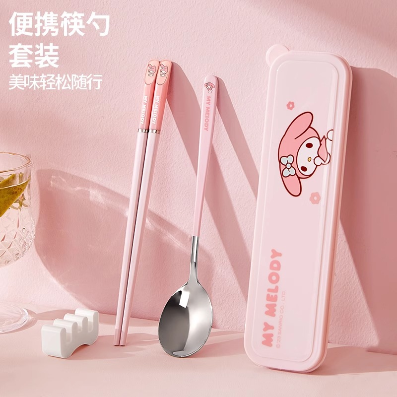 サンリオ ポータブル箸とスプーンセット メロディー シナモンドッグ ハローキティ かわいい漫画 学生 オフィスワーカー 食器