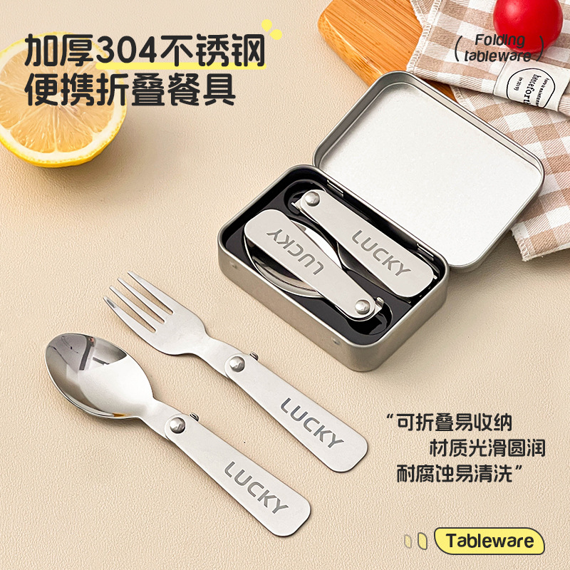 304ステンレス折りたたみスプーン箸2点セットバナナボックス学生寮アウトドア旅行ポータブル食器