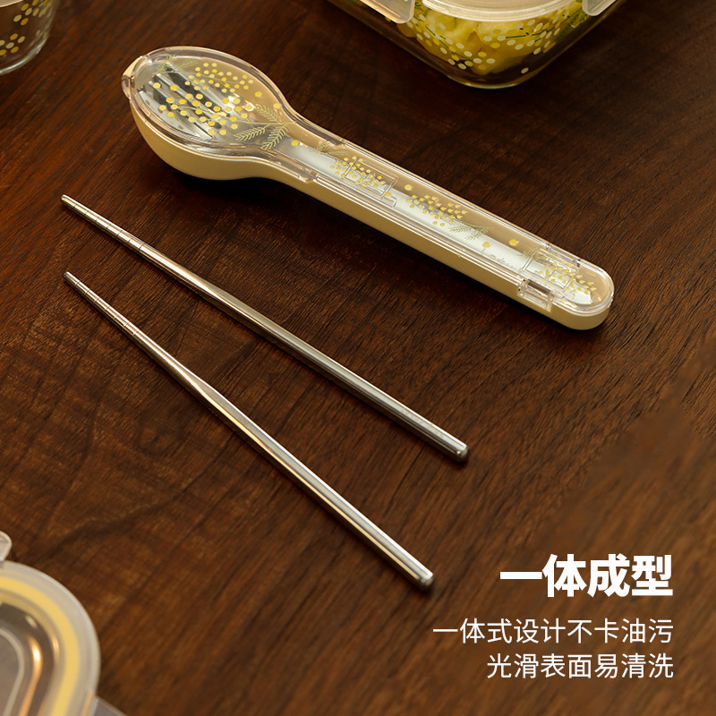 クリーム色学生ポータブル食器304ステンレス箸スプーンセット箸スプーン収納ボックス