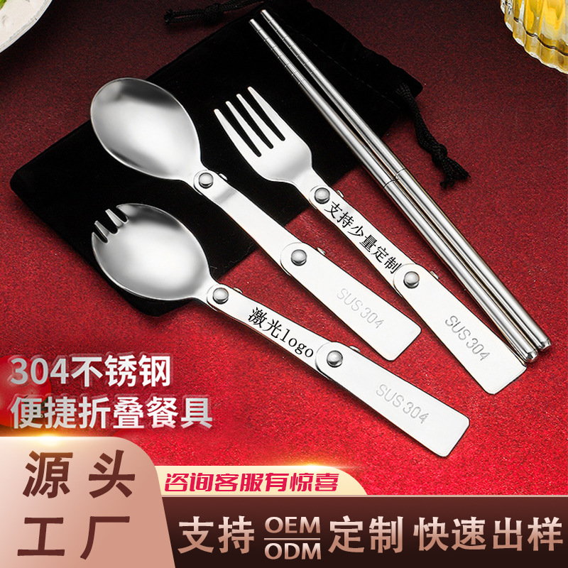 316 ステンレス鋼のポータブル食器インゴットスプーン、フォーク、箸 3 点セット学生アウトドア旅行セットギフトプリントロゴ