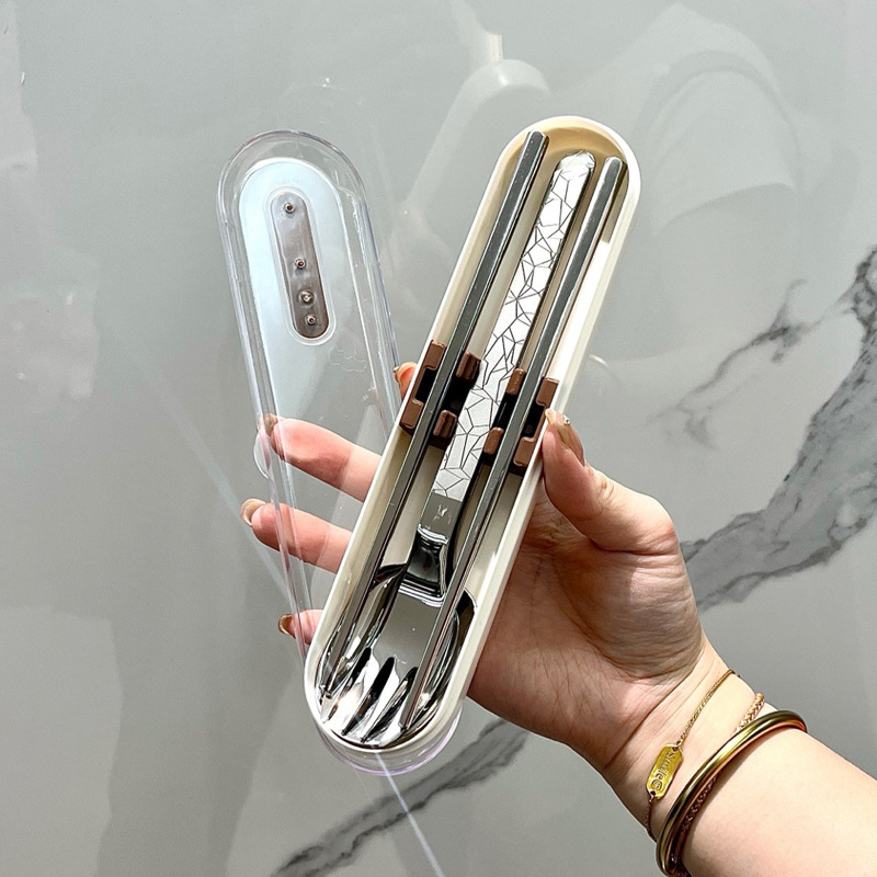 316 ステンレス鋼のポータブル食器学生フォーク、スプーン、箸サイレントストレージ 3 点セット高価値旅行食器