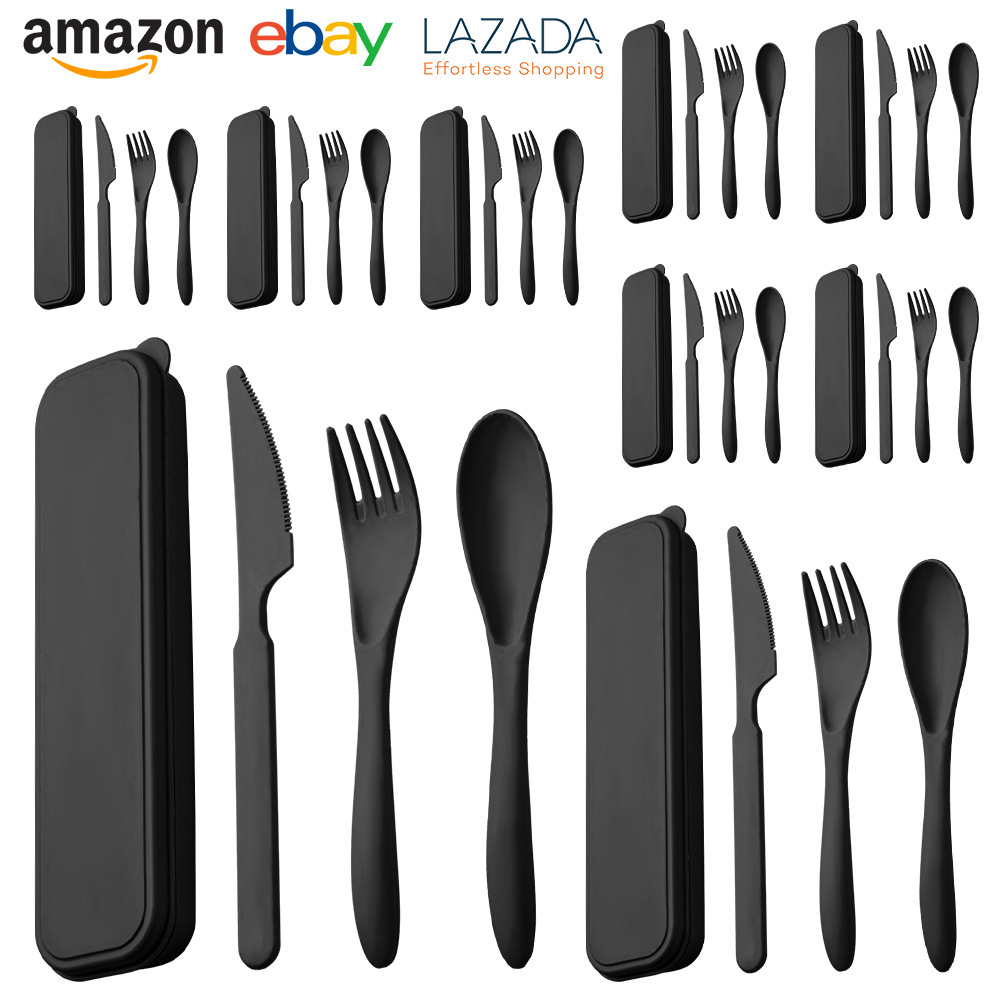 TEMU Amazon 小麦ストロー ナイフ、フォーク、スプーン 3 点セット 北欧マカロン ブラック アウトドア ポータブル カトラリー セット