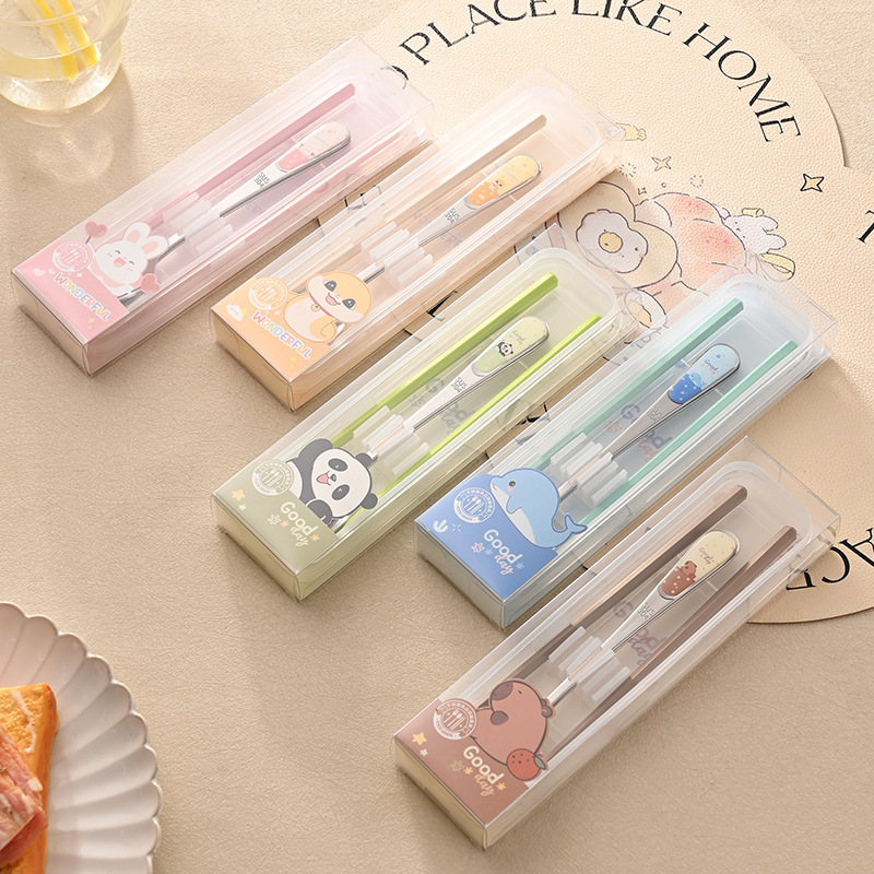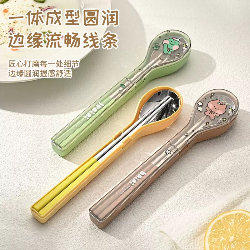 25年新作 学生向け携帯食器セット コンパクトで持ち運びやすく可愛い漫画304ステンレススプーンと箸の2点セット