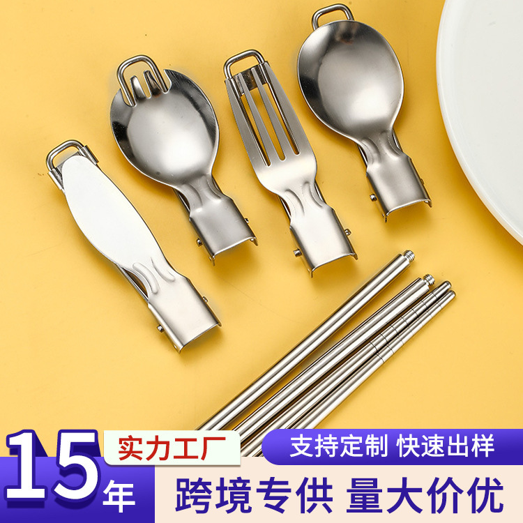 アマゾン304ステンレス折りたたみカトラリーセットナイフフォークスプーン箸旅行ポータブルピクニッククロスボーダーカトラリー