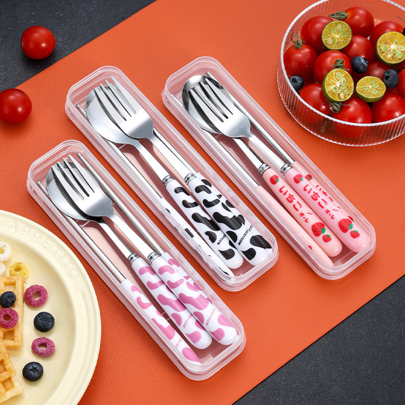 北欧ステンレス304携帯食器韓国式スプーン箸三点セット創意学生室外食器セット