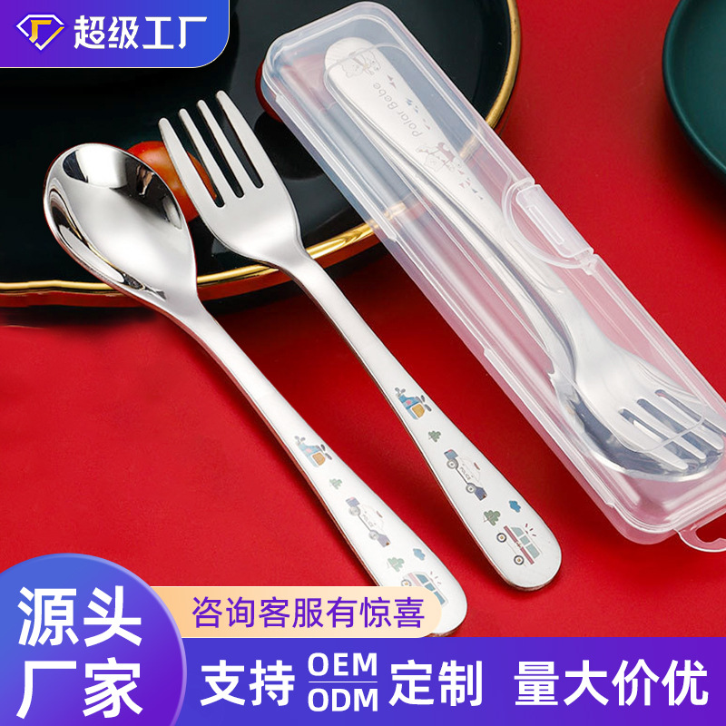 304ステンレスフォークスプーン赤ちゃんスプーン子供フォーク食器一体スプーン平头スプーンスプーンフォークセット