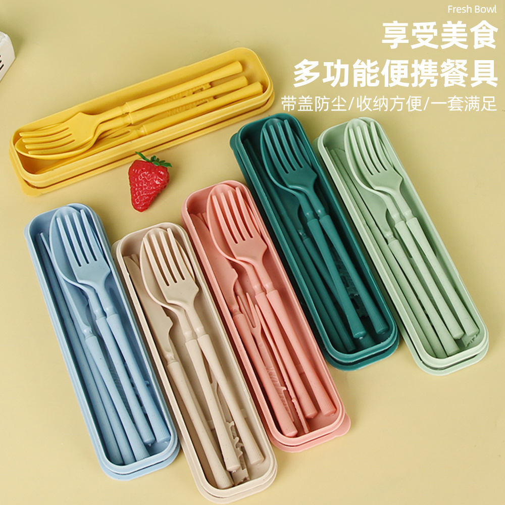 学生や会社員向けの食器収納ボックス、ポータブルテイクアウトフォーク、スプーン、箸、プラスチックボックス、旅行用食器ボックス、防塵空箱
