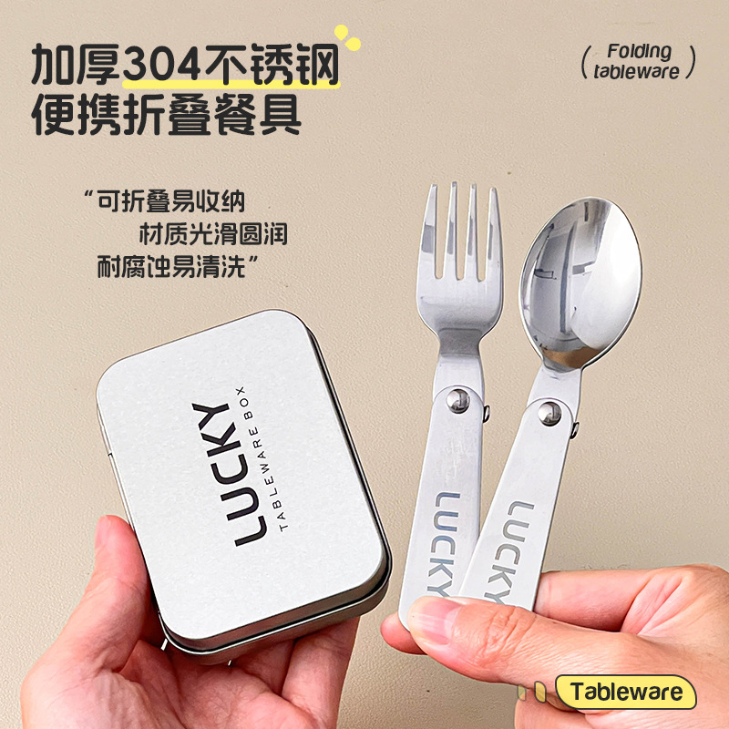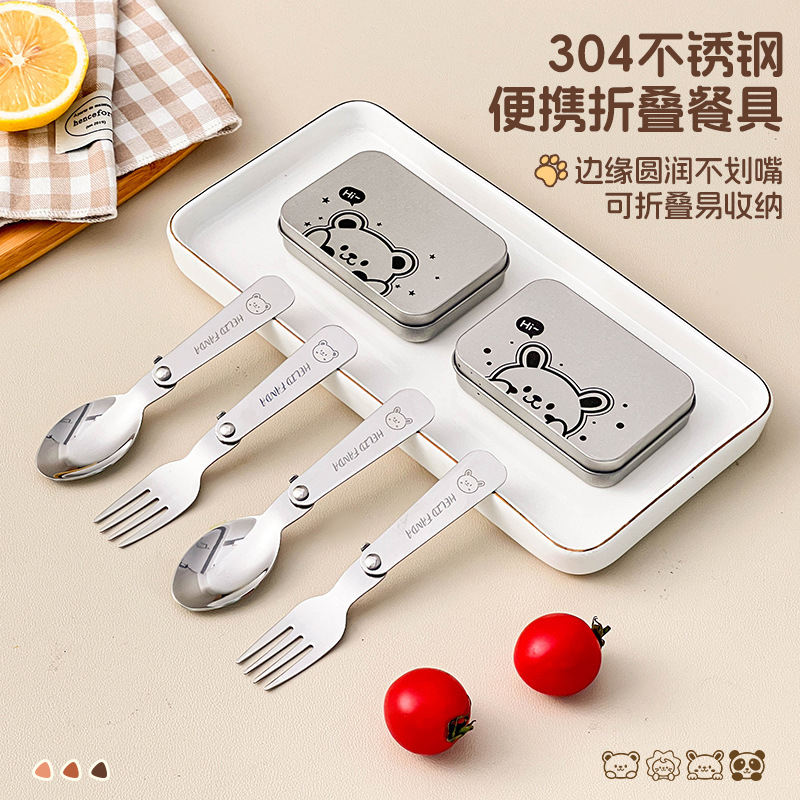 漫画 304 ステンレス鋼折りたたみフォークとスプーン学生屋外ピクニック旅行ポータブル食器クリエイティブ折りたたみスプーンクロスボーダー