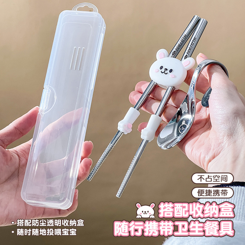 熊引き出し式携帯食器セット食品級ステンレススプーン箸収納ケース学生食器一人服