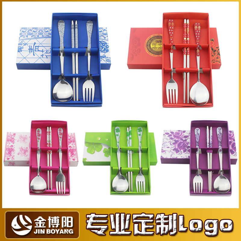 中国風ステンレス食器セットスプーンフォーク箸食器三点セット販促小プレゼント印刷ロゴ