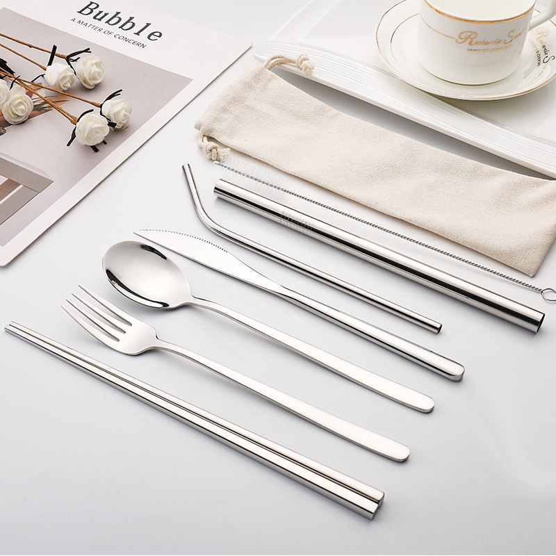 携帯食器セットステンレス箸スプーンフォークセット学生屋外旅行三点セット食器卸売り