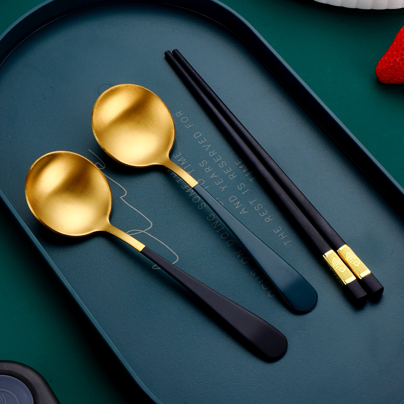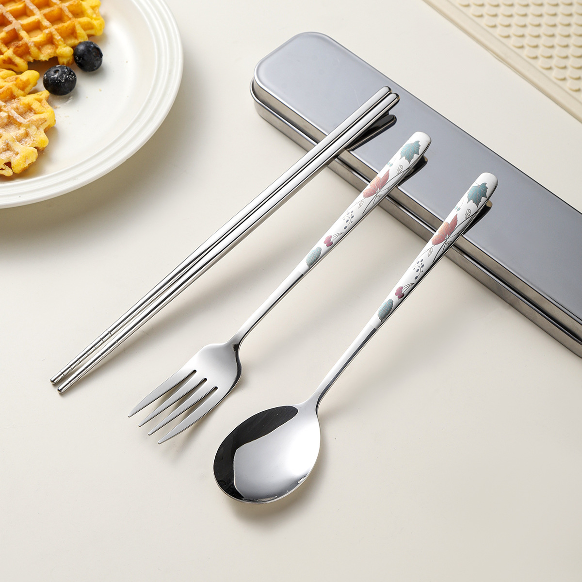 304ステンレス箸スプーン学生セットフォークスプーン一人入れ携帯食器ケース三点セット収納ケース