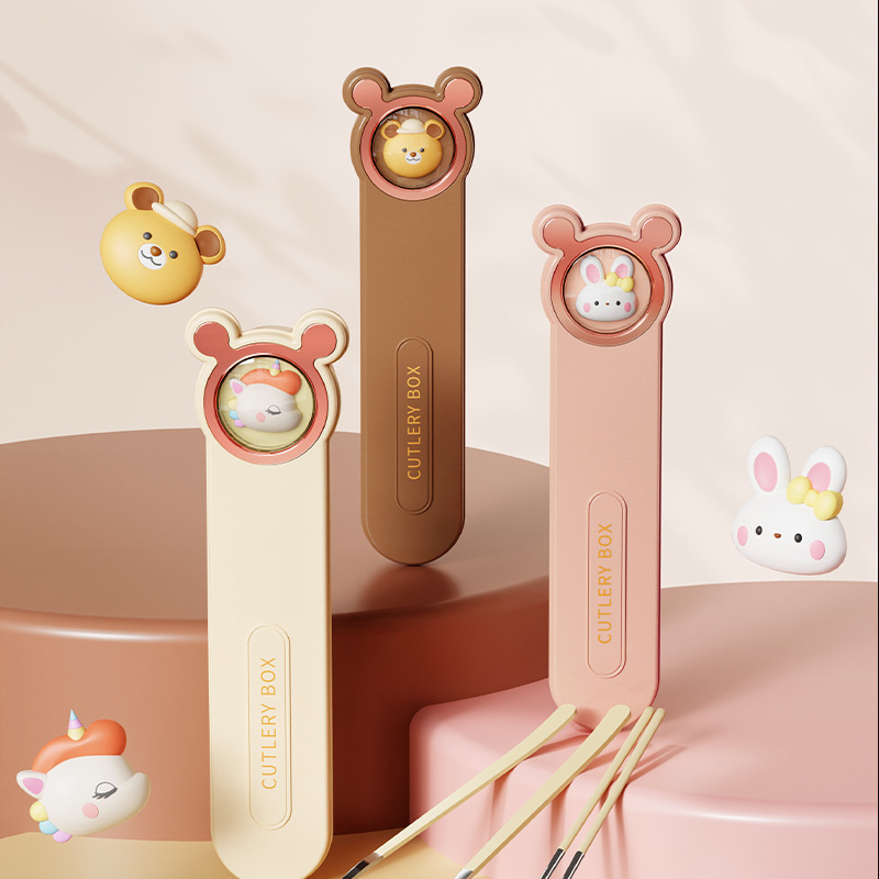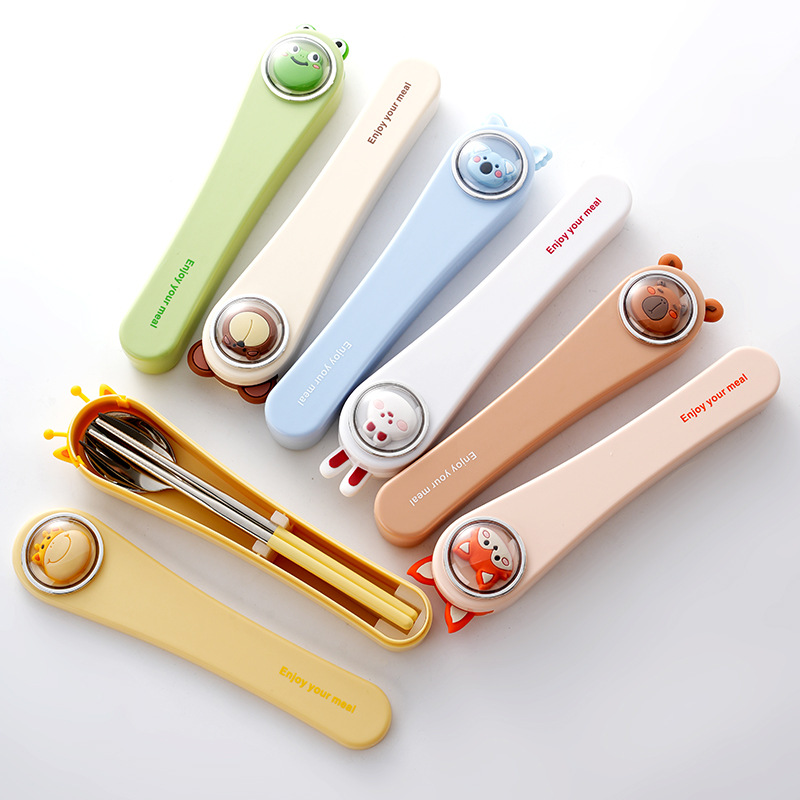新しいアイスクリーム学生便利な食器収納ボックス 304 ステンレス鋼子供の漫画スプーン、フォーク、箸 3 点セット