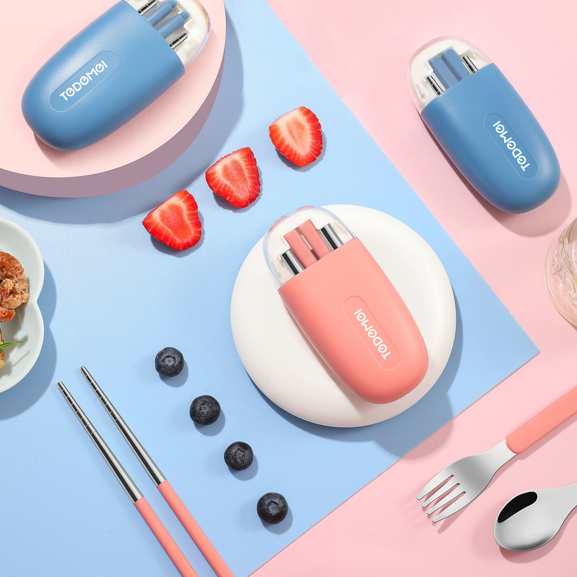 ドーパミンポータブル食器箸スプーンセットかわいいオフィスワーカー学生シングルパック個人収納ボックス