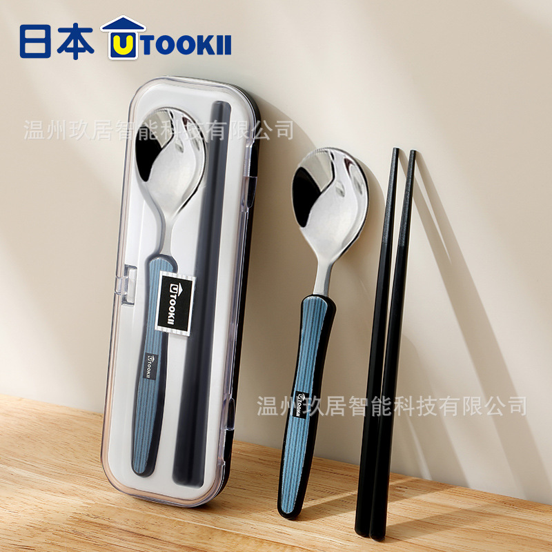 日本輸入ポータブル箸箱スプーン食器子供学生オフィスワーカー箸スプーンセットフォークテイクアウト箸